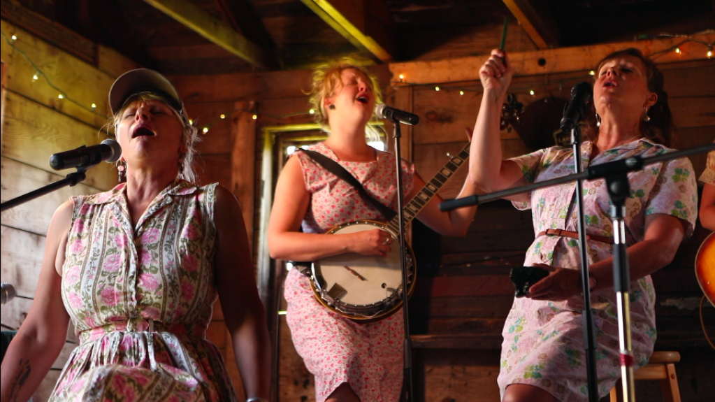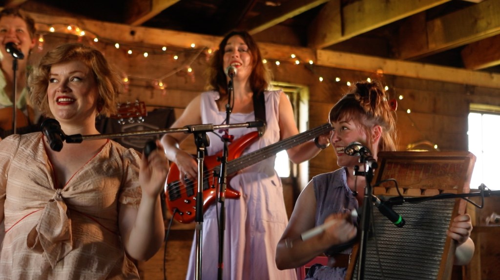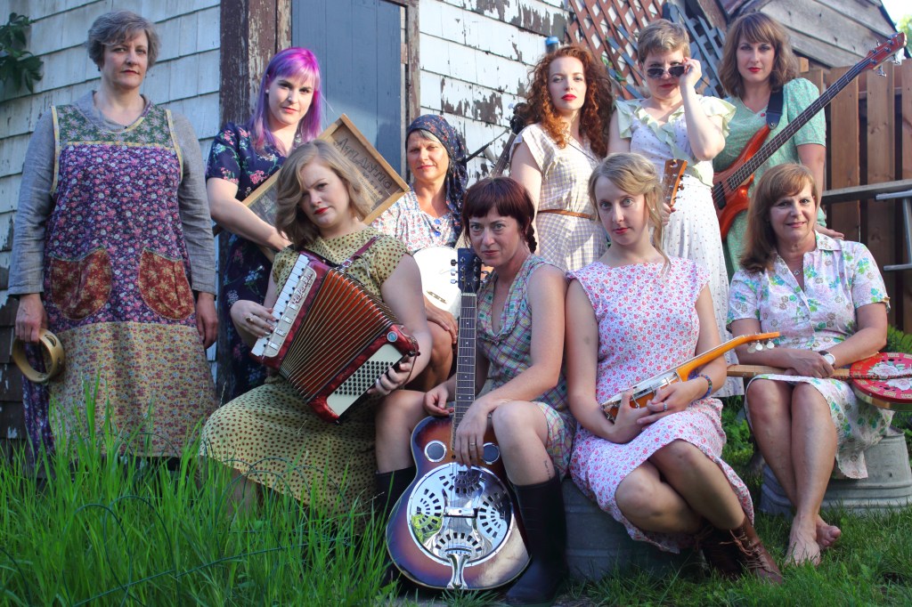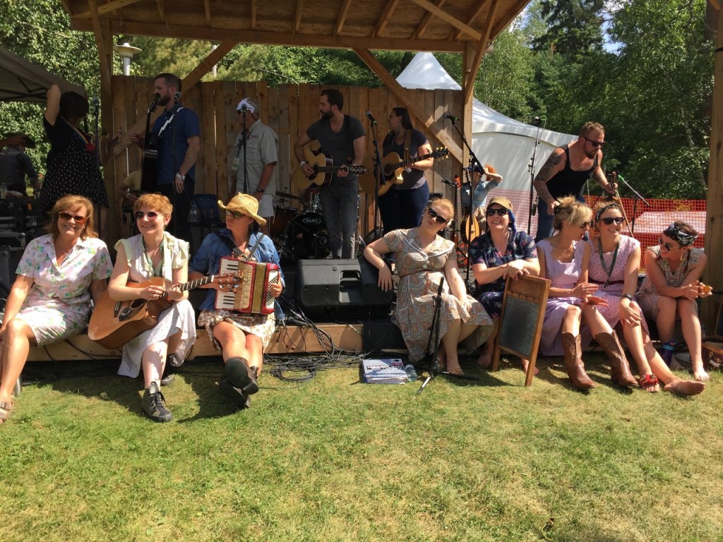 Claire, Dora, Liz, Michelle, Laura and Alissa after their first performance at the Winnipeg Folk Festival, 2025